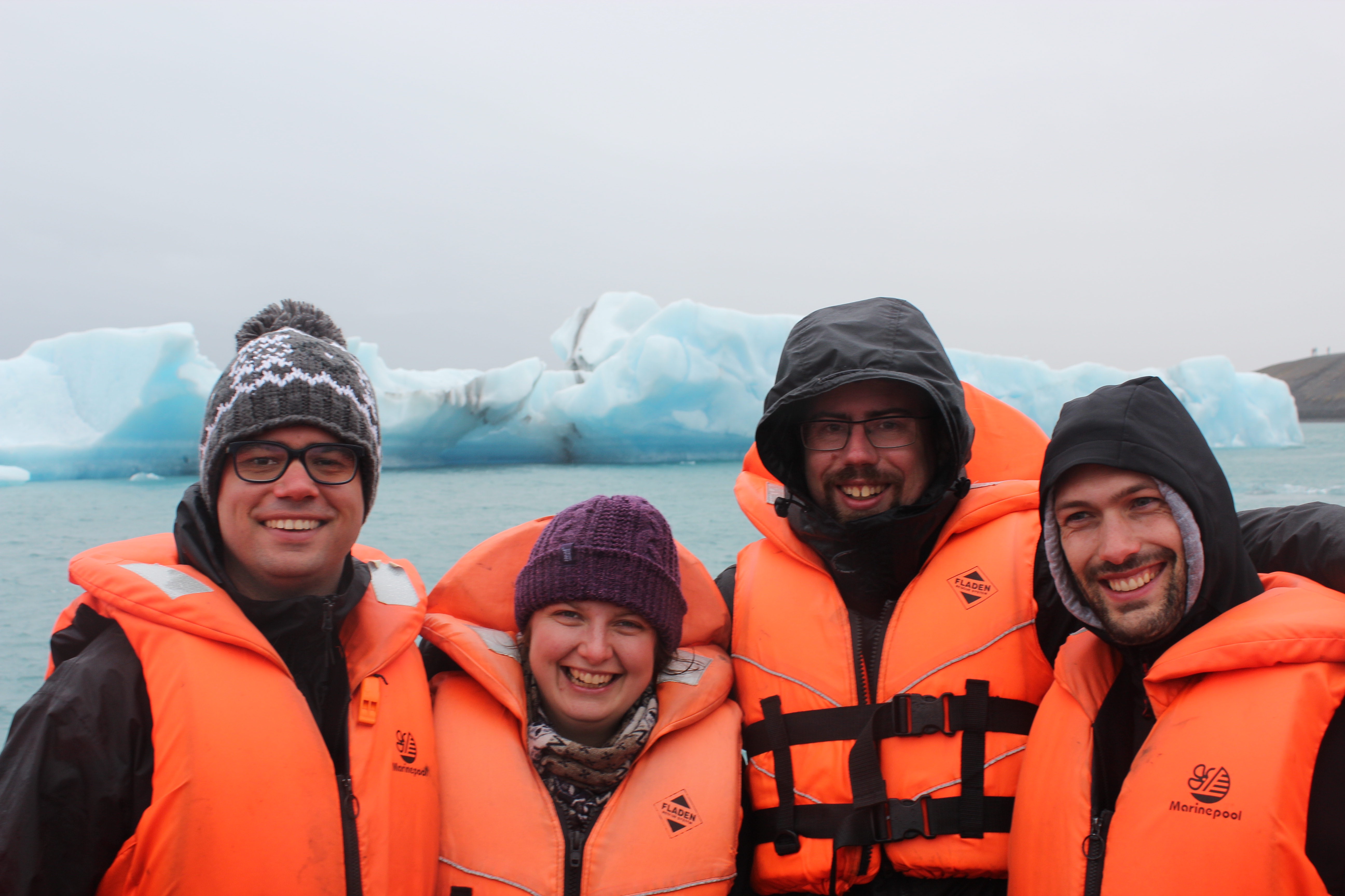 Gisteren zijn we van Höfn naar Vik gereden en onze eerste stop was bij een meer met ijsschotsen. Hoewel het weer niet echt goed was (het regende nogal hard) hadden we daar een amfibie-boot gereserveerd die een rondje over het meer heeft gevaren.